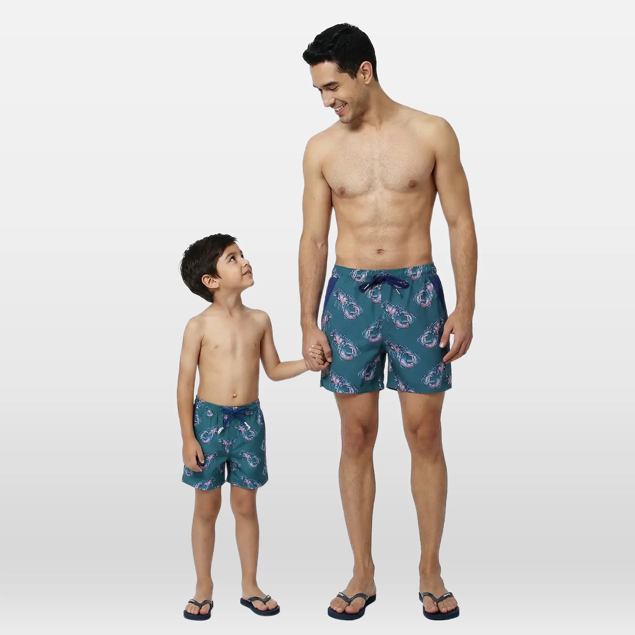 Matching Father & Son Lobster Swim Shorts with Waterproof Pocket Randy Cow Waterproof Pocket Swim Shorts