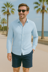 Soft, calm, and undeniably cool — the Baby Blue Linen Shirt is your new warm-weather staple. Think clear skies, quiet beaches, and breezy days… bottled into a shirt that makes you look like the relaxed guy who’s got everything under control (even if you absolutely don’t).