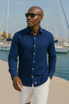 Meet the Navy Linen Shirt, where classic tailoring meets effortless summer cool. Crafted from our signature organic lightweight linen-cotton blend, this shirt delivers the breathability you need with the sharp structure you want. Whether you're strolling along a marina, heading to a rooftop dinner, or pretending you “just threw this on,” the Midnight Breeze has your back.